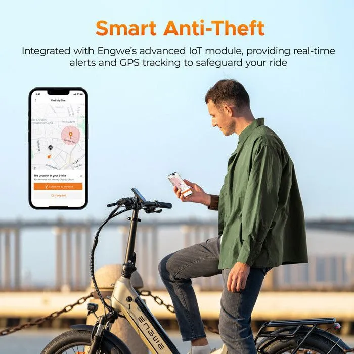 incorporated with Engwe’s cutting-edge IoT module, offering GPS monitoring and real-time notifications to protect your ebike.